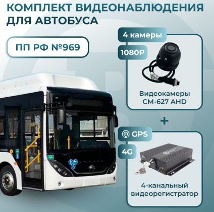 Комплект видеонаблюдения для автобуса c 4 камерами GPS + 4G (ОНЛАЙН)