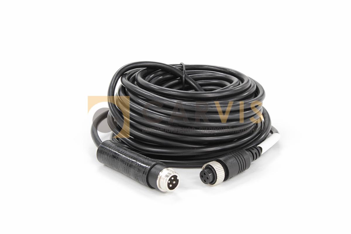Позволяет соединить между собой автомобильный регистратор и камеру наблюдения. Длина кабеля 15 метров позволяет устанавливать видеонаблюдение не только в легковые автомобили, но и спецтранспорт. С одной стороны переходника авиационный штекер (папа), с другой — авиационный штекер (мама). Используется для коммутации отдаленных камер например: камера заднего вида на автобусе.