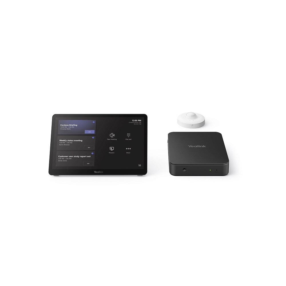 Терминал для больших и среднего размера переговорных под сервис Zoom Rooms, состоит из мини-ПК, сенсорной панели управления, датчика занятости и предустановленного ПО. Комплект позволяет наиболее удобным и доступным способом созвать видеоконференцию и управлять ею, осуществлять управление вариантами отображения на экране, видеозаписью, звуком, видеокамерами и другими подключенными устройствами (рекомендуется видео и аудиопериферия Yealink. Датчик занятости RoomSensor обнаруживает участников, входящих в переговорную комнату, автоматически активируя всю систему. Поддерживает проводное и беспроводное (с помощью опционального адаптера WPP30) подключение ПК пользователя для обмена контентом и работы в BYOD-режиме. Совместим с YDMP для удаленного администрирования, конфигурации обновления и диагностики, в том числе, и подключенной периферии Yealink. Конструкция позволяет установить мини-ПК на стене, за экраном или под столом, надежно закрепив подключаемые кабели, а панель управления размещается на столе или стене.