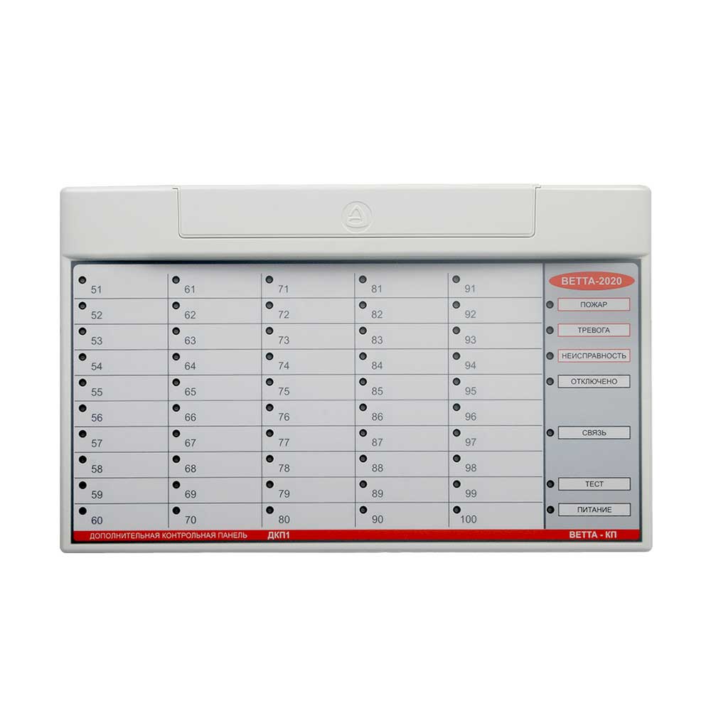 «Сибирский Арсенал» «Ветта-ДКП-1» как часть многокомпонентного пультового прибора «Ветта-КП» в составе системы «Ветта-2020» («Ветта-2020» объединяет до 40 объектовых приборов, осуществляет централизованный контроль состояния до 200 адресных зон пожарной и охранной сигнализации, содержащих до нескольких тысяч извещателей, обеспечивает управление объектовыми приборами) выполняет функцию дополнительной контрольной панели под управлением основной — контролирует до 50 адресных зон. Количество каналов индикации состояния зон объектовых приборов и УППУ — 50 (51 ~ 100). Интерфейс связи — RS-485. Питание — DC 12 V (два входа для резервирования). Размер — 291.2×179.2×31.6 мм. Вес — 600 г. Рабочая температура — –30 °С… +55 °С. Защита от пыли и влаги — IP30.