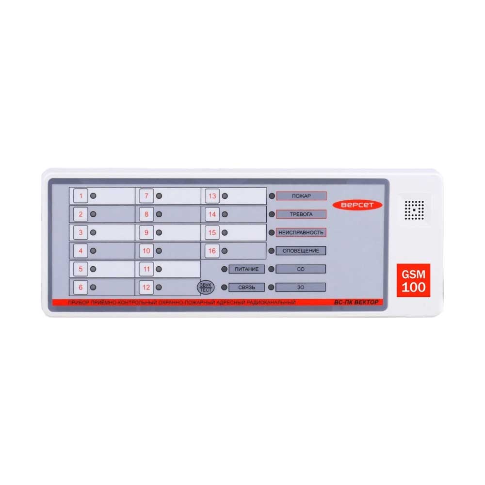 Радиоканальный контрольный прибор «Сибирский Арсенал» «ВС-ПК Вектор-АР GSM-100» рассчитан на 32 извещателя, 16 оповещателей. Совместим с прибором мониторинга «Ветта-50 GSM». Оборудован тремя реле, двумя слотами для SIM-карт. Оповещает о тревоге и других событиях сигналами световых и звуковых оповещателей, контактами реле, SMS-сообщениями на номера пользователей и на прибор мониторинга.