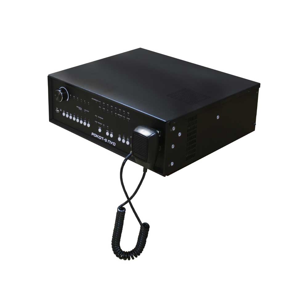 Прибор управления оповещением «Сибирский Арсенал» «Рокот-5» ПУО-100 работает в составе системы оповещения. Транслирует информацию и предварительно записанные сообщения при возникновении пожара или в других экстремальных ситуациях. Система состоит из прибора управления оповещением (ПУО) «Рокот-5», усилителя мощности «Рокот-5 УМ», микрофонной станции «Рокот-5 МС» и акустических систем АС-4, АС-4-2, АС-5, «Рокот-5» ПУО-100 — из плат контроллера, усилителя звукового сигнала, индикации, управления, блока источника питания, трансформатора.