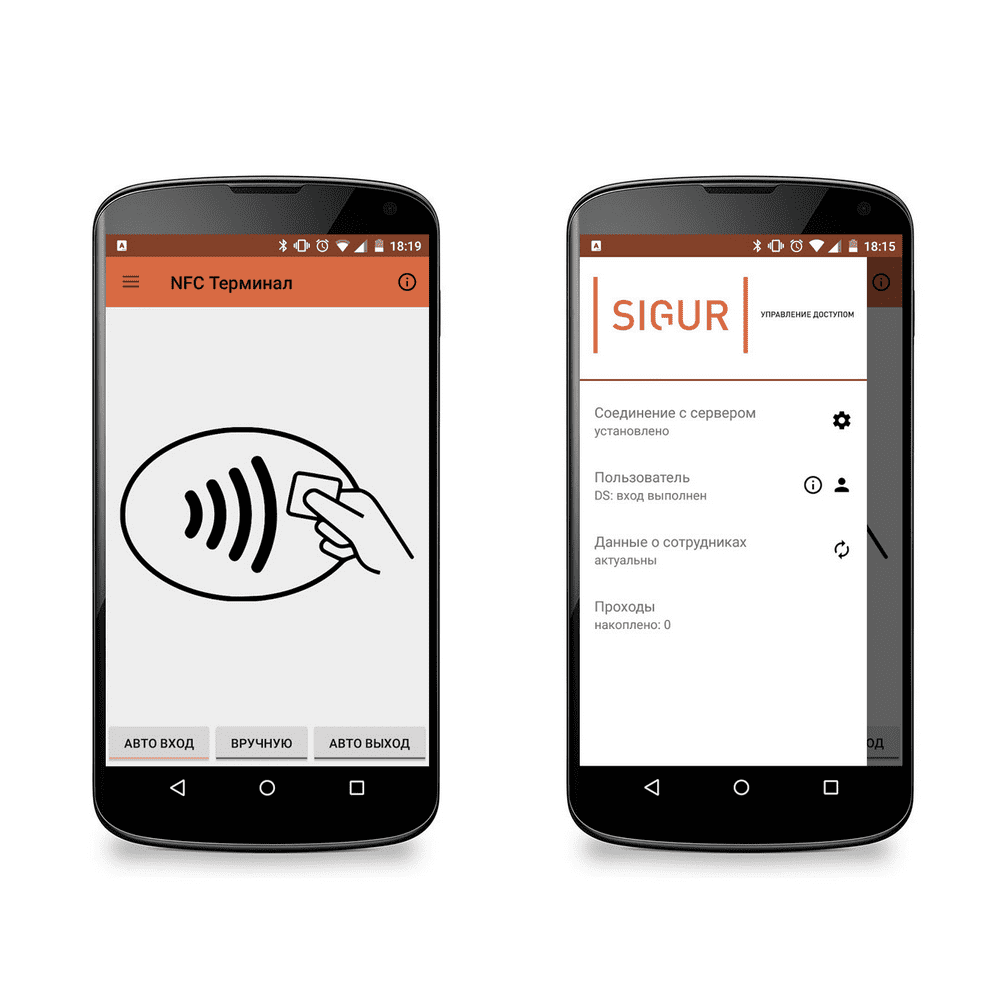 Терминал Sigur NFC работает на любых мобильных устройствах на базе ОС Android версии 3.0 и выше. Среда передачи данных — Wi-Fi или мобильный интернет. Весь трафик, как и хранимые во внутренней памяти данные, шифруется.