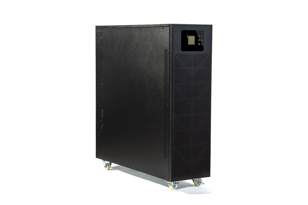 Установка UPS — напольная. Защита от влаги и пыли отвечает стандарту IP20. Рабочие температуры — 0 ºС… +40 ºС. Габариты — 250×828×868 мм. Вес — 56 кг.