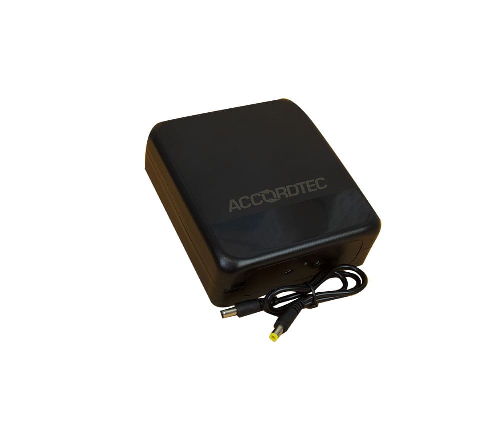 Блок бесперебойного питания AccordTec ББП-12/5 Li-ion (внешний аккумулятор) включают в цепь между сетевым адаптером и потребителем.