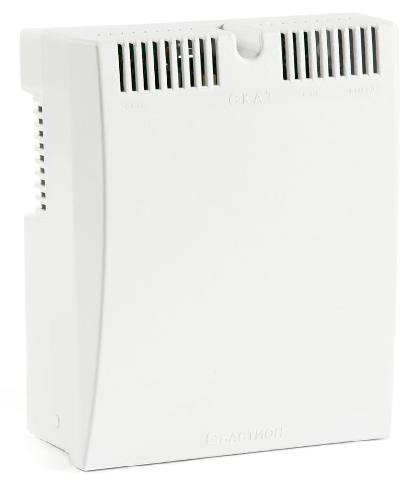 «Скат-1200Б» соответствует ГОСТ Р53325-2012, работает в круглосуточном режиме. Рабочие температуры — –10 ºС… +40 ºС. Защита от пыли и влаги — IP20. Корпус — пластиковый, перфорированный. Монтаж — на вертикальную поверхность. Размер — 170×210×105 мм, вес — 500 г.