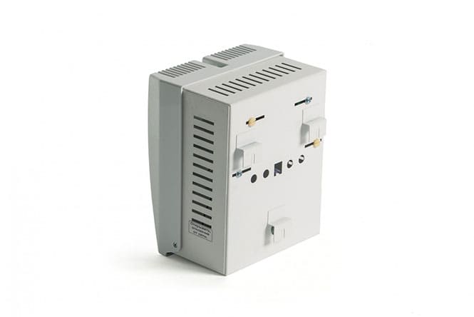 В комплектацию «Скат-1200М» входят три разъемных клеммника. Корпус с откидной крышкой, тремя точками крепления и отверстиями под кабель выполнен из металлопластика. Монтаж — настенный. Рабочие температуры — –10 ºС… +40 ºС. Защита от пыли и влаги — IP20. Размер — 170×210×136 мм, вес — 1 кг.