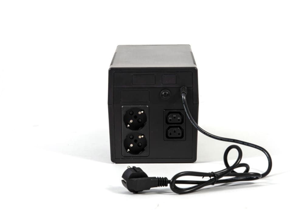 Источник бесперебойного питания 220 В, 1000 ВА (600 Вт), встроенный АКБ 7 Ач, 2 шт., время резерва — 2,5 мин., холодный старт, модифицированный синус, световая и звуковая индикация режимов работы. Встроенный стабилизатор (диапазон сети — 170...270 В), защита от всплесков напряжения, защита от перегрузки. 4 выходных разъёма: 2 шт. IEC 320 C13 (компьютерный) и 2 шт. CEE 7/4 (розетка с заземлением).