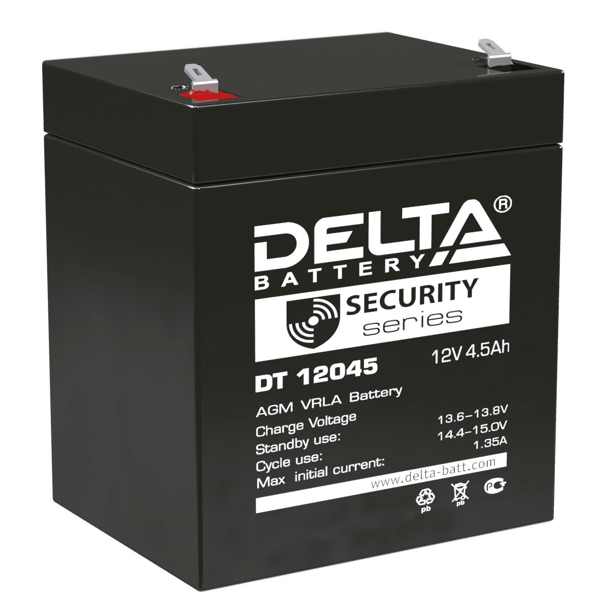 Герметичный свинцово-кислотный аккумулятор Delta DT 12045 выполнен по технологии AGM: серная кислота между пластинами поглощена микропористым заполнителем из стекловолокна. Такое решение повышает безопасность и долговечность благодаря устранению риска утечки электролита и взрыва, устойчивости к воздействию вибрации. Не нужно доливать электролит и дистиллированную воду (рекомбинация газа — до 99 %). Для автоматического сброса избыточного давления предусмотрен клапан.