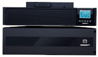 Резервное питание обеспечивают 16 герметичных необслуживаемых свинцово-кислотных батарей (12 В) емкостью 7 А·ч (суммарное напряжение — 192 В). Аккумуляторы в нормальном режиме (с инвертором) постоянно включены в электроцепь: переключение между режимами мгновенное, в режиме высокой эффективности — до 10 мс. Время батарейной поддержки при 50 %-й нагрузке — 11 мин., 70 %-й — 6.5 мин., 100 %-й — 4 мин. Восстановление емкости АКБ от 0 % до 90 % — 3 ч. Для удлинения срока резервного питания предусмотрено подключение внешнего аккумуляторного блока (EBM), для электропитания особо важных (резервирование с избыточностью предложения) или слишком мощных устройств — подключение по параллельной схеме до трех ИБП.