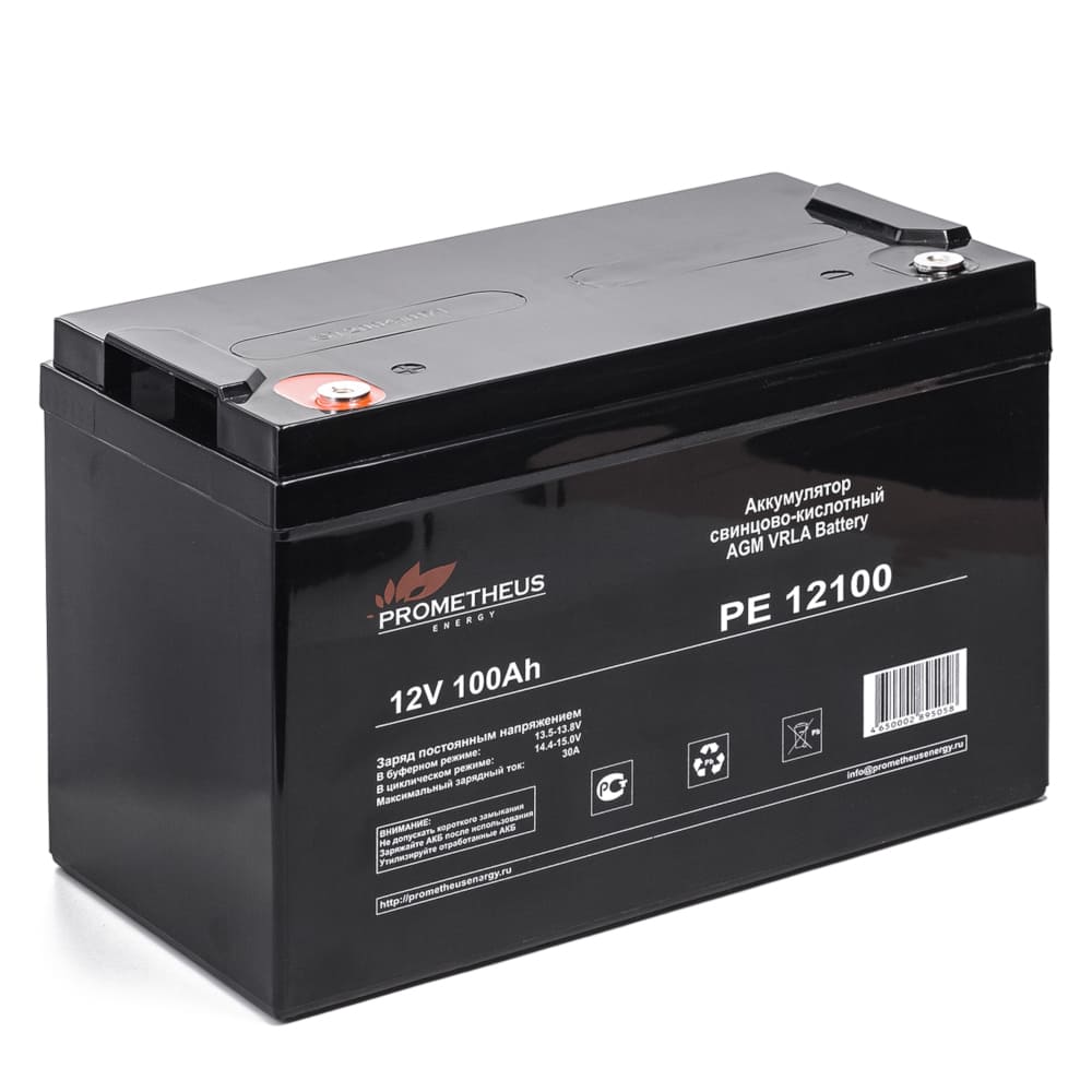 Необслуживаемый герметичный свинцово-кислотный аккумулятор для ИБП Prometheus Energy PE 12100 состоит из шести элементов, Соответствует UL, IEC, ГОСТ 12.2.007.12–88, ГОСТ 6851–2003 пп.2.2.3, 2.2.4, 2.2.7, 2.2.8. Поддерживает циклический (периодическая подзарядка) и буферный (постоянная подзарядка) режимы. Для низкой саморазрядки и высокой конструктивной прочности решетки пластины легированы кальцием.