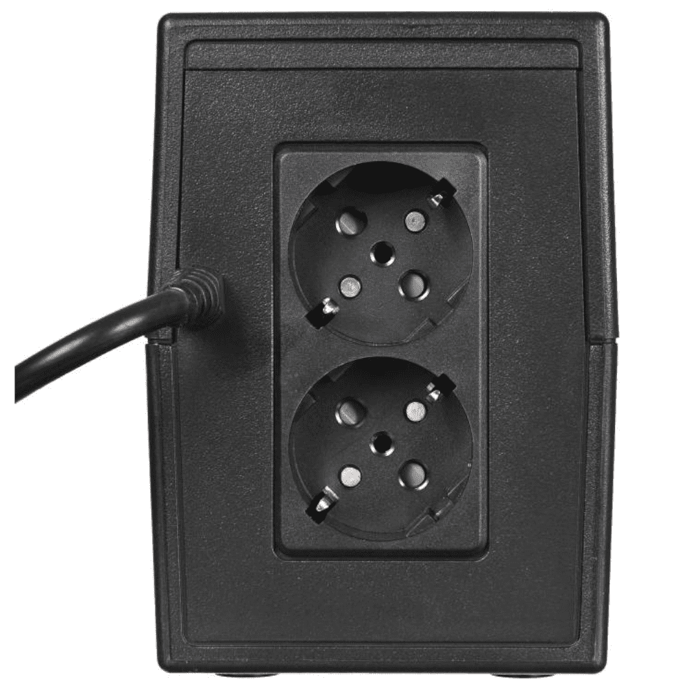Источник бесперебойного питания Line-Interactive, модифицированная синусоида; P-нагр.1050 ВА/600 Вт; U-вх.160…275 В; 1 АКБ 12 В, 9 Ач; Защита от перегрузки и КЗ; USB;Розетка Schuko x 2; t-раб.0…+40°C; 100х143х278 мм. Время автономной работы от батарей при нагрузке 100 Вт 20 мин.