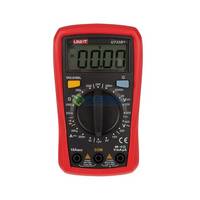 Портативный цифровой мультиметр UNI-T UT33B+ для замера силы DC, напряжения AC и DC, сопротивления, проверки непрерывности электроцепи, диодов (падение напряжения), транзисторов (NPN или PNP-типа) и батареек (1.5 В, 9 В, 12 В, исправность и уровень заряда) оборудован LCD-дисплеем (максимальное отображаемое значение — 1999), зуммером. Соответствует категории перегрузки II (600 В, для портативных и других устройств с кратковременными перепадами напряжения).