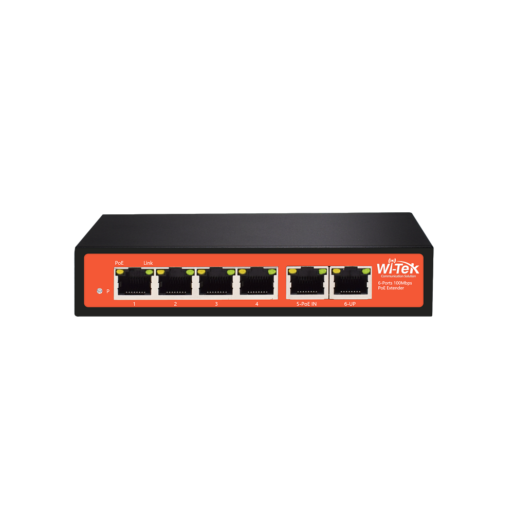 Повторитель оснащен 1 PoE in портом 100Base-TX, 4 PoE out портами 100Base-TX и 1 портом 100Base-TX.