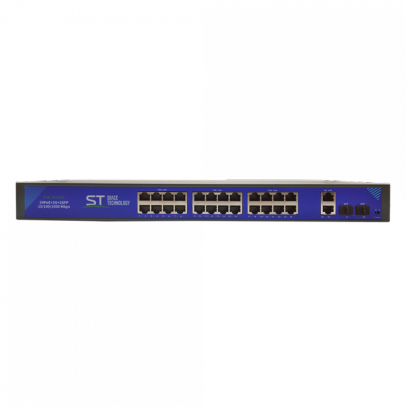 Источник питания ST-S242POE (24G/2G/2S/400W/AB)PRO, POE вариант A/B.Switch POE 24-х портовый для обеспечения проводных сетей напряжением 48В