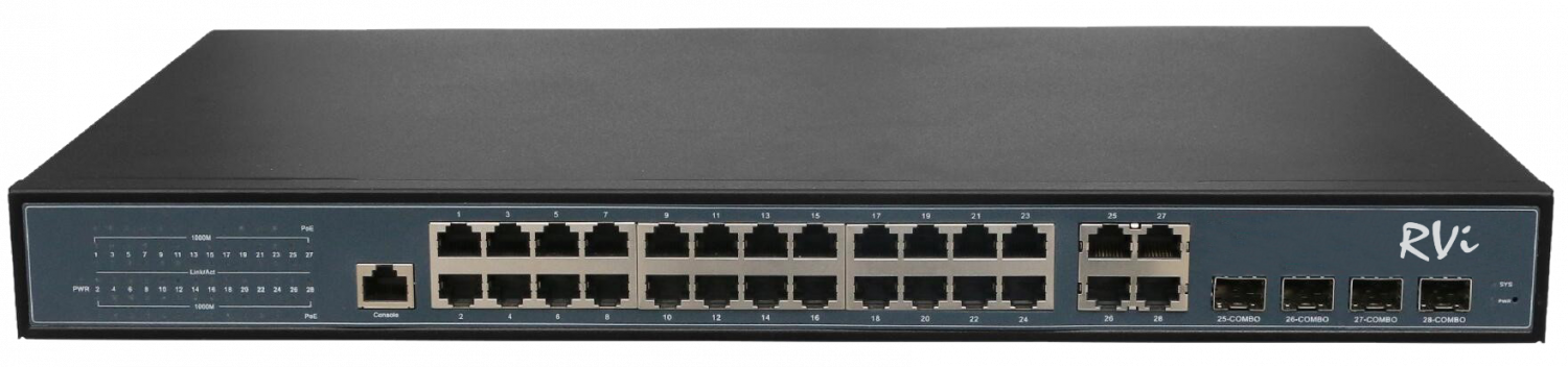 Общее количество портов: 28; Количество портов PoE: 24; Сетевой интерфейс PoE: 10Base-T/100Base-TX/1000Base-T; Количество Ethernet - портов (RJ-45): 4; Сетевой интерфейс Ethernet (RJ-45): 10Base-T/100Base-TX/1000Base-T; Количество Ethernet - портов (SFP): 4; Сетевой интерфейс Ethernet (SFP): 1000BaseSX/LX; Тип Ethernet-портов: Комбинированные; Консольный порт: Да; Максимальная дальность передачи в режиме CCTV: 150 М; Стандарт PoE: 802.3af/802.3at; Максимальная мощность на порт: 30Вт; Бюджет PoE: 400 Вт; Тип управления: L2; Электропитание: AC 100-240 В до 25 Вт ; Диапазон рабочих температур: -20°С...55°С; Габаритные размеры: 440(Д)х440(Ш)х45(В) мм