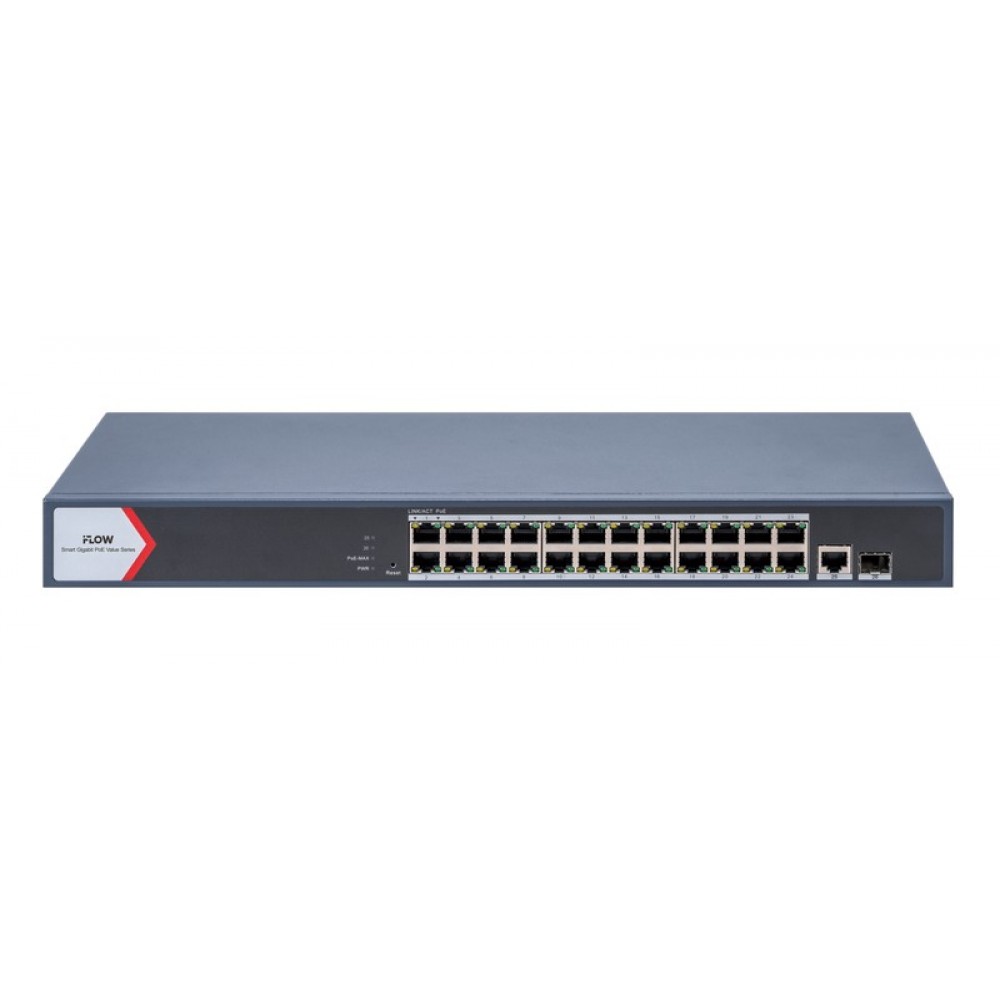 L2, Смарт-управляемый, 24 гигабитных порта RJ45 PoE, 1 uplink порт 1000М RJ45 1 гигабитный порт SFP, 802.3af/at, бюджет PoE 370 Вт, облачное управление, VLAN, STP/RSTP loop prefention, PoE watchdog, поддержка режима передачи до 300м,10Мб/с, CAT6