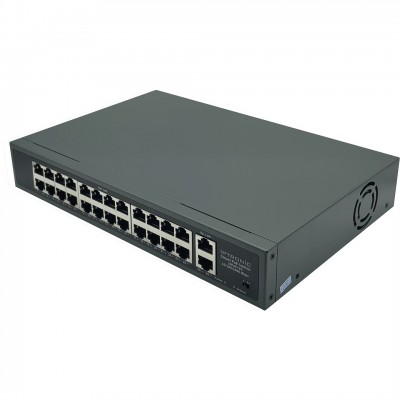 26-портовый не управляемый коммутатор с 24 портами POE для передачи данных и питания на IP устройства, поддерживающих эту функцию (Power-over-Ethernet), по кабелю типа витая пара (UTP, STP, FTP)
