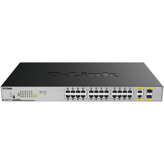 DGS-1026MP - это коммутатор с 24 портами 10/100/1000Base-T, поддерживающими технологию PoE (Power over Ethernet), и двумя комбинированными портами 100/1000Base-T/SFP. Данное устройство предназначено для простого подключения и питания через Ethernet-кабели устройств, таких как беспроводные точки доступа, сетевые камеры и IP-телефоны, совместимые со стандартом PoE.
