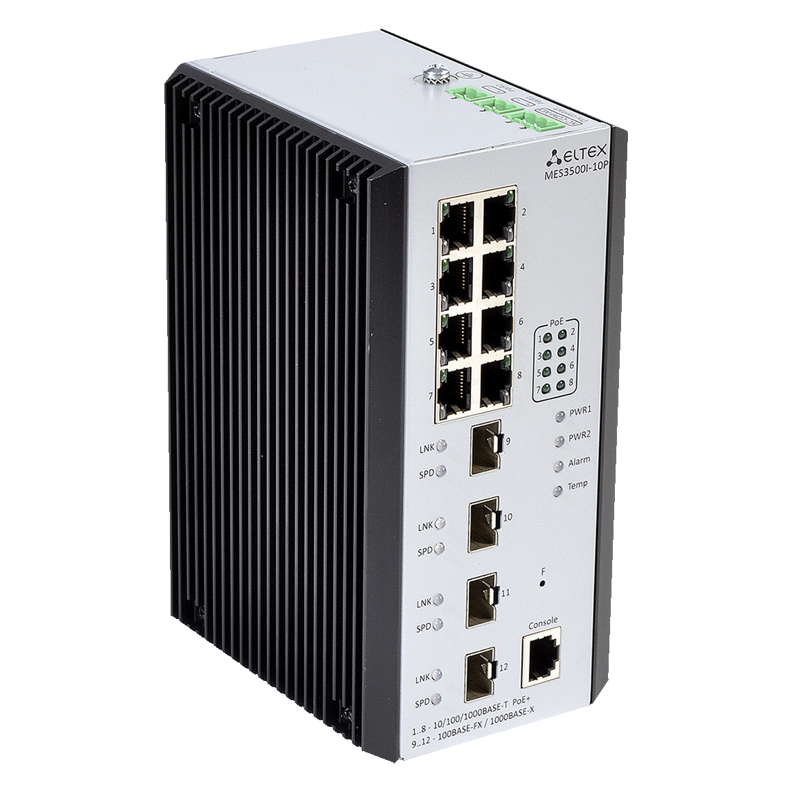 Промышленные коммутаторы модели MES3500I-10P предназначены для построения защищенных и отказоустойчивых сетей передачи данных на объектах, где предъявляются повышенные требования к устойчивости к воздействию различных факторов: температурным перепадам, механическим воздействиям, вибрации и другим.