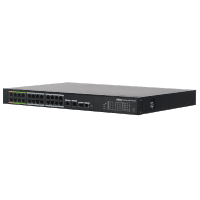 Управляемый коммутатор второго уровня Dahua DH-LR2226-24ET-360 оснащен четырьмя гигабитными портами и 24 портами RJ-45 с поддержкой РоЕ, из них 8 — с ePoE. Дальность трансляции с технологией ePoE по витой паре — 800 м (10 Мбит/с), по коаксиальному кабелю — 1000 м (10 Мбит/с) и 100 м (100 Мбит/с). У двух РоЕ-портов, выделенных оранжевым цветом, повышенный бюджет PoE — 60 Вт (для устройств с Hi-PoE).