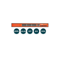 Коммутатор оборудован 24 портами 1000Base-T, соответствующими стандарту 802.3af/at (PoE, PoE+) с общей мощностью 400 Вт, и 4 комбинированными портами SFP/1000Base-T.