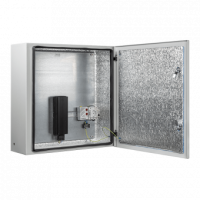 Удобство монтажа: Перфорированная монтажная панель из оцинкованной стали, DIN-рейка, DIN-розетка с заземлением, гермовводы MG-25 и клеммная колодка обеспечивают удобный и быстрый монтаж оборудования.