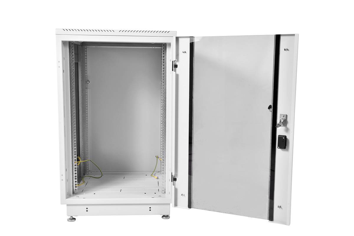 Телекоммуникационный сборно-разборный шкаф ЦМО ШТК-М-22.6.10-1ААА-9005 напольного монтажа реализован в типоразмере 19" по ГОСТ 28601-90 (МЭК 297). Каркас состоит из двух сварных рам, соединенных швеллерами. В комплекте — четыре стальных направляющих, две съемные усиленные боковые и задняя стенки с пластиковыми защелками и точечными замками для надежной фиксации и удобства сборки, крыша, фальшпол, дверь универсальной навески с ударопрочным тонированным стеклом, углом открывания 180°, точечным замком с поворотной ручкой. Листовые детали покрыты порошковой полимерной предварительно фосфатированной шагреневой краской черного (RAL 9005) цвета, направляющие и швеллеры оцинкованы.
