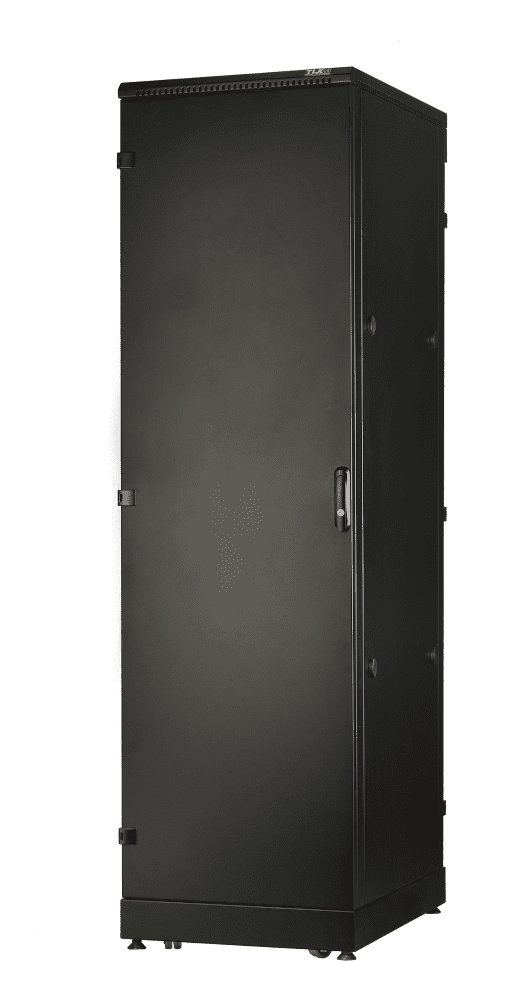 Шкаф оснащен системой заземления, замками с функцией поджима, вентиляционными нишами со сменными фильтрами в потолочной панели и задней двери, монтажными отверстиями в основании для крепления к полу.