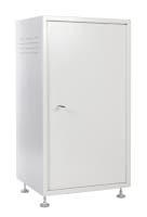 Цельнометаллическая сварная конструкция изготовлена из оцинкованной листовой стали толщиной 2 мм. Дверь с тремя точками фиксации (в закрытом положении) углублена на 20 мм, укомплектована усиленным ригельным замком. Предусмотрена дополнительная фиксация шкафа к стене — через отверстия в задней панели.