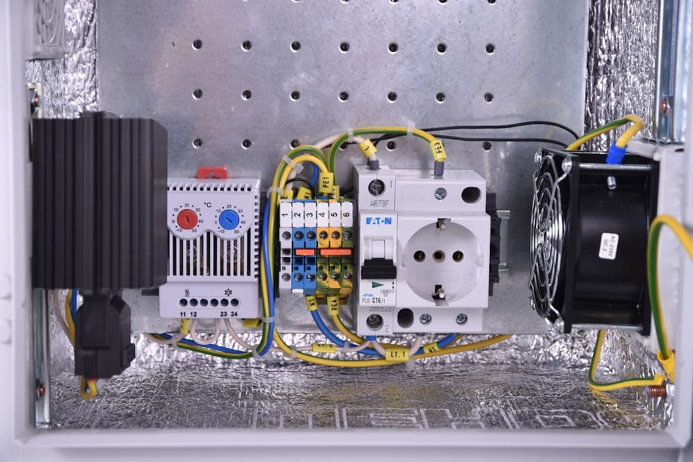 Комплектация для стабильной работы: Встроенный обогреватель и вентиляторный модуль обеспечивают оптимальный температурный режим внутри шкафа. Термоизоляционный фольгированный материал на внутренних поверхностях дополнительно поддерживает стабильную температуру.