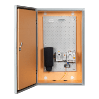 - Перфорированная монтажная панель из оцинкованной листовой стали, клеммная колодка на панели.