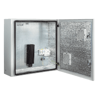 Электротехнический шкаф Mastermann «Мастер 4 УТПВ-П +» рассчитан на уличную эксплуатацию в диапазоне температур –55 °С… +50 °С под непосредственным воздействием осадков. Соответствует ТУ 4372-002-62942652-2016, классу I по ГОСТ 12.2.007.0 (защита от поражения электрическим током), IP54 по ГОСТ 14254-96, ГОСТ 15150-69. Состоит из цельнометаллического сварного корпуса, уплотненной двери с двумя вентиляционными панелями. Поставляется с DIN-рейкой, DIN-розеткой с заземлением, двумя гермовводами MG-25, клеммной колодкой, системой обогрева (обогревателем HG 140 мощностью 150 Вт. автоматическим выключателем 10 А, нормально закрытым термореле KTO 0111 с регулировкой температур запуска в диапазоне –10 °С… +50 °С).