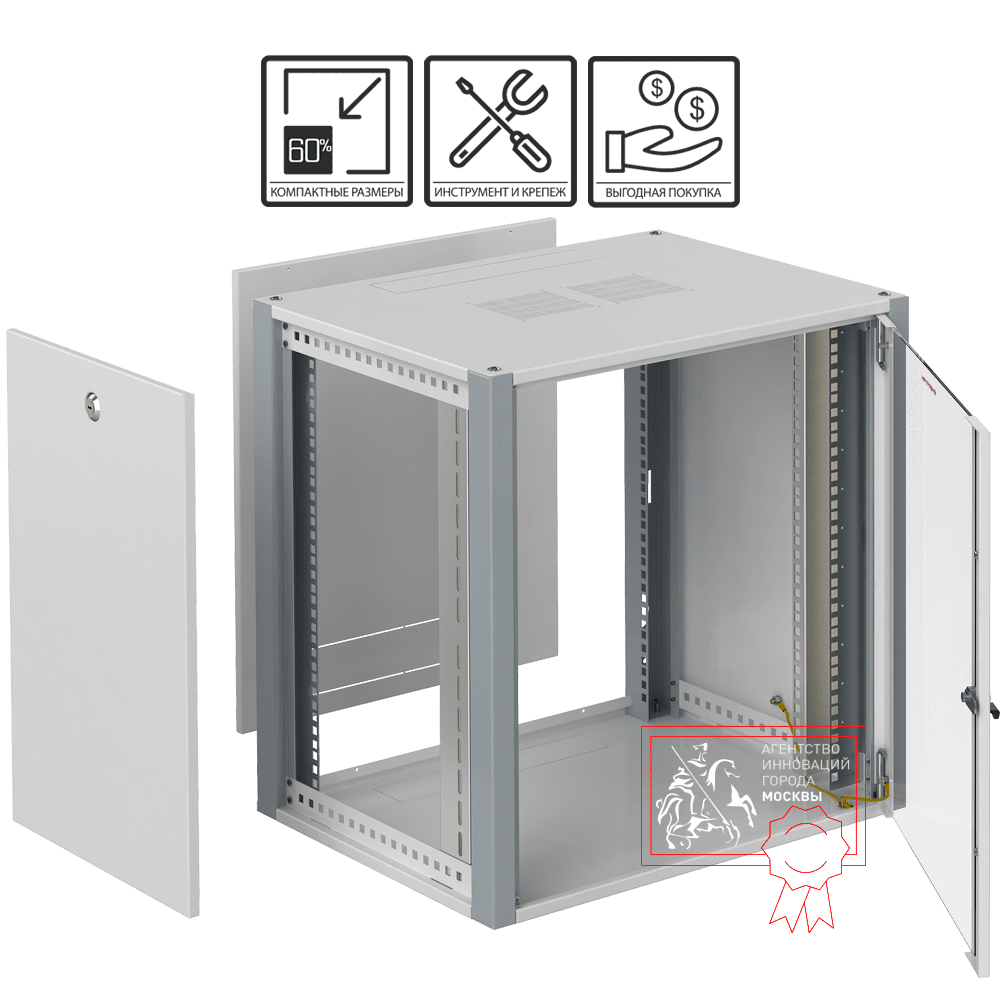 Листовые детали покрыты полимерной порошковой краской (светло-серый RAL 7035, серый RAL 7000) с предварительным фосфатированием. Монтаж — универсальный. Защита — IP20. Размер — 600×350×315 мм. Вес — 12.4 кг.