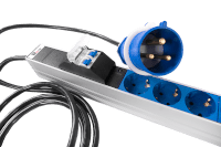 Вертикальный 2-контурный блок силовых розеток Rem R-32-10S-12C13-4C19-A-I-1420-3-2P для стойки или шкафа оборудован промышленной вилкой IEC 309 (с 3-метровым шнуром), десятью Schuko, двенадцатью IEC 60320 C13 и четырьмя IEC 60320 C19. Изготовлен в системе несущих конструкций 482.6 мм по ГОСТ 28601.2 (19" по МЭК 297). Для удобства подключения коленчатых штекеров розетки Schuko расположены под углом 45°.