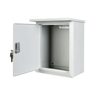 Материал — окрашенная (полиэфирный порошковый состав) сталь толщиной 1.2 мм. Монтаж — навесной. Цвет — светло-серый (RAL 7035). Размер (ш, г, в) — 280×140×330 мм. Защита от влаги и пыли — IP41.