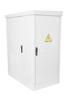 В комплект входят кронштейны и винты для заглушки задней двери, монтажная панель, клеммный блок, вводное распределительное устройство (модульный переключатель, ограничитель перенапряжения с тепловой защитой, автоматические выключатели, устройство защитного отключения), светодиодный светильник с магнитным креплением, управляемый герконами или выключателем. Материал — сталь толщиной до 2.5 мм, Покрытие — порошковая полимерная краска. Цвет — светло-серый (RAL 7035). Размер — 1045?930?775 мм, вес — 148 кг. Питание — AC 220 V.
