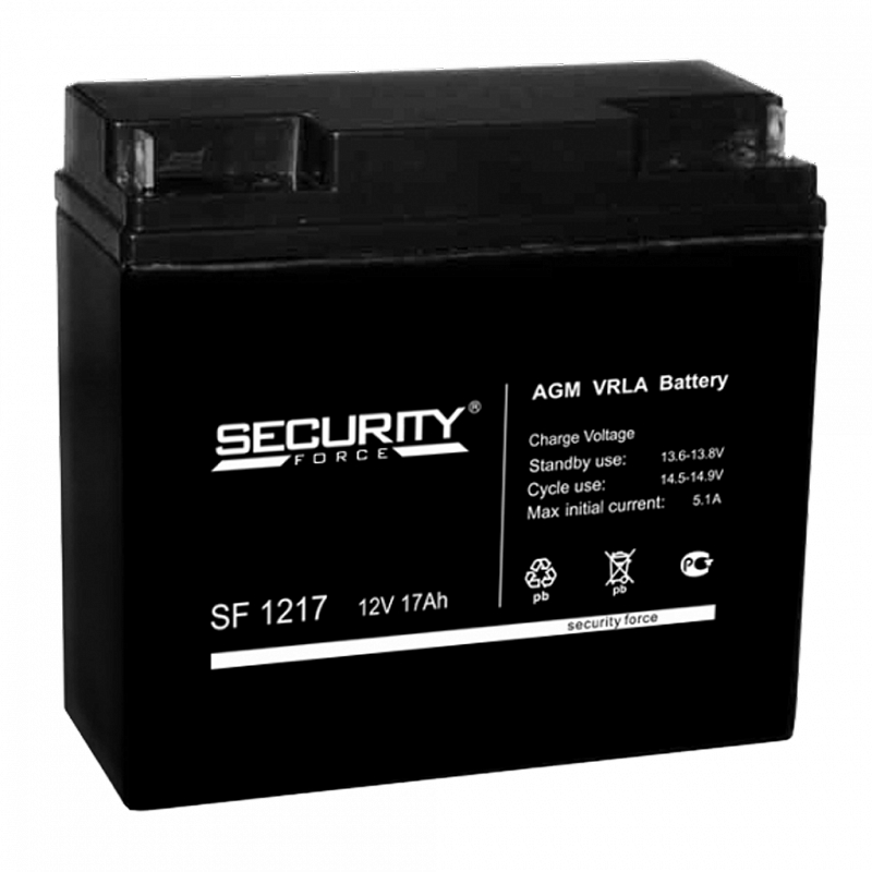 SF 1217 - свинцово-кислотная аккумуляторная батарея емкостью 17 А∙ч. Предназначена для обеспечения питанием 12 В постоянного тока. Электролит абсорбированный (технология AGM).