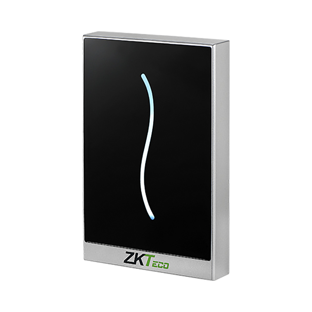 Данное устройство представляет собой бесконтактный считыватель карт стандарта Mifare. Оно оснащено интерфейсом Wiegand (26/34) и способно считывать информацию с карт на расстоянии до 5 см. Монтаж считывателя осуществляется наклонным способом.