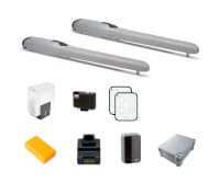 Комплект Nice PROVIEWWINGO5BDKCE для автоматизации распашных ворот (створки длиной до 3.5 м, весом до 500 кг) состоит из двух приводов WG5000, электронного блока управления MC800, фотоэлементов Medium EPM, приемника OXIBD, двух пультов ДУ ON3EBD, блока программирования Pro-View, сигнальной лампы ELAC, IBT4N — адаптера шины BUS4T для подключения IT4WIFI и O-View к приводам и блокам управления.