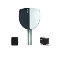 Комплект Nice SPIN23BDKCE для автоматизации секционных гаражных ворот площадью до 10.5 м², высотой до 2.43 м состоит из электромеханического привода SN6021, приводной направляющей рейки SNA30 с зубчатым ремнем (сталь, длина 3000 мм), приемника OXIBD и пульта ДУ ON3EBD.