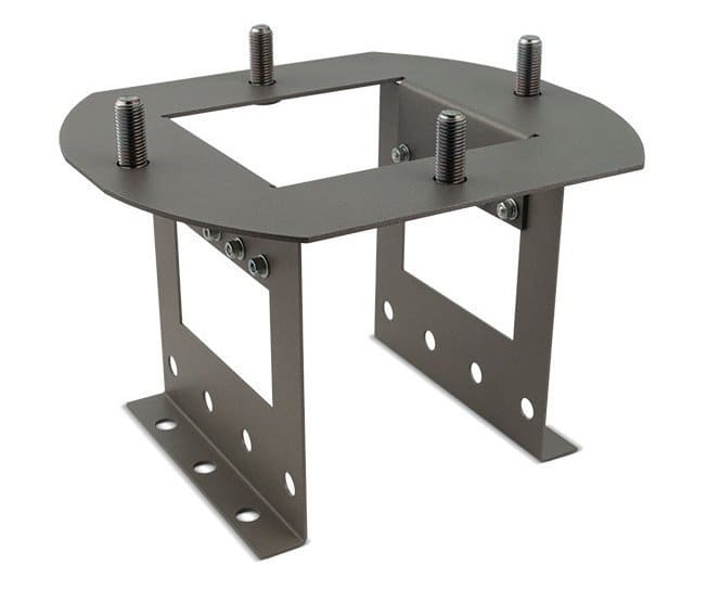 Монтажную пластину PERCo GM1 для установки стойки шлагбаума GS04 на непрочное основание (слабый грунт) устанавливают в опалубку в земле, добавляют отрезки арматуры и заливают бетоном. В конструкции предусмотрены четыре монтажных штыря на резьбе и отверстие для гофрорукава под ввод проводов. GM1 поставляется в индивидуальной упаковке.