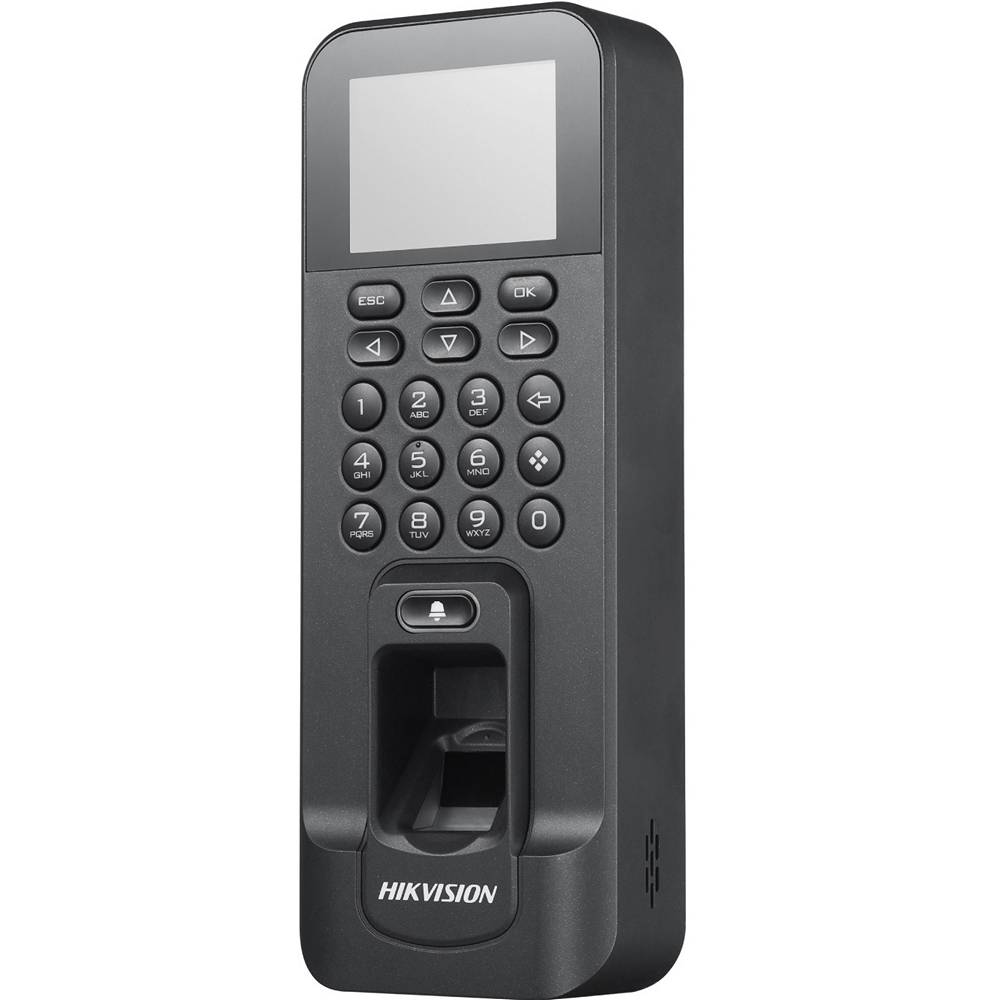 Терминал контроля доступа Hikvision DS-K1T803EF с двумя встроенными считывателями — биометрическим и EM-Marine — предназначен для легкой и быстрой организации точки прохода. Прост в установке, не требует сборки, функционирует автономно, но можно включить в состав системы как считыватель (подключение к СКУД по RS-485; скорость передачи данных — 19 200 bps-N-8-1). Память — 256 МБ. Емкость памяти — 3000 отпечатков, 3000 пользователей, 100 000 событий. Параметры биометрического считывателя: оптический модуль, скорость идентификации — менее 1.5 сек., вероятность ошибочного предоставления доступа — 0.001 %, ошибочного запрета доступа — 0.01 %. Параметры считывателя карт EM-Marine: рабочая частота — 125 КГц, дальность считывания — 20–50 мм.