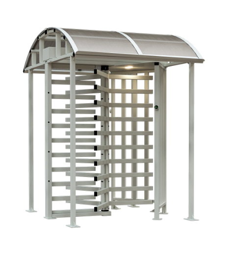 Дополнительная защита от атмосферных осадков и несанкционированного доступа сверху может быть достигнута установкой опциональной крыши, которая интегрируется в конструкцию турникета.