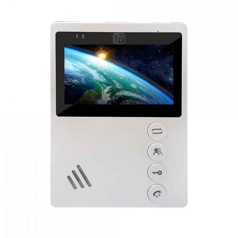 ST-M101/4 (M) БЕЛЫЙ, Дисплей: 4", Разрешение: 480*272, Поддерживаемые стандарты видео: CVBS, Интерком: Дуплекс, Режим «не беспокоить»: Нет, Слот под SD карту: Нет, Количество мелодий звонка : 1, Функция фоторамки: Нет, Возможности подключения: До 2х вызывных панелей,до 4х мониторов, Напряжение питания: АС 100-240В (встроенный БП), Способ монтажа : Накладной (монтажная пластина), Рабочая температура : -10°С...+60°С, Пластик, 170х117х17мм
