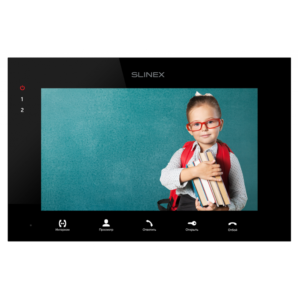Абонентский монитор Slinex SQ-07MT black оснащен 7" цветным сенсорным TFT-экраном с разрешением 800×480 и рассчитан на подключение двух вызывных панелей, двух камер видеонаблюдения и телевизора. В интеркоме играет роль вспомогательного. Предусмотрены встроенная память на 90 фотографий и слот для microSD емкостью до 32 Гбайт.