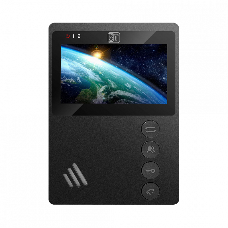 ST-M101/4 (М) ЧЕРНЫЙ, Дисплей: 4", Разрешение: 480*272, Поддерживаемые стандарты видео: CVBS, Интерком: Дуплекс, Режим «не беспокоить»: Нет, Слот под SD карту: Нет, Количество мелодий звонка : 1, Функция фоторамки: Нет, Возможности подключения: До 2х вызывных панелей,до 4х мониторов, Напряжение питания: АС 100-240В (встроенный БП), Способ монтажа : Накладной (монтажная пластина), Рабочая температура : -10°С...+60°С, Пластик, 170х117х17мм