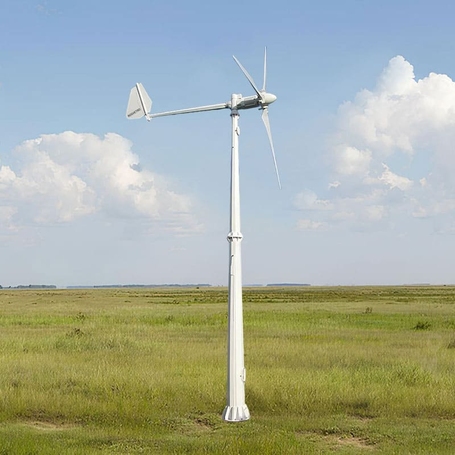 Ветрогенератор ROSVETRO PC-5K комплектуется контроллером PWM и балластом. Особенностью этой модели является наличие лопастей с вариативным шагом рыскания, что позволяет оптимизировать работу ветрогенератора в различных условиях ветра. Рыскание - это изменение угла наклона лопастей для регулирования скорости вращения ротора и мощности генератора.